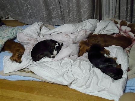 寝床が無かったわけではなく、お犬様5匹と一緒に寝たかったのであえて、おかあさまに
